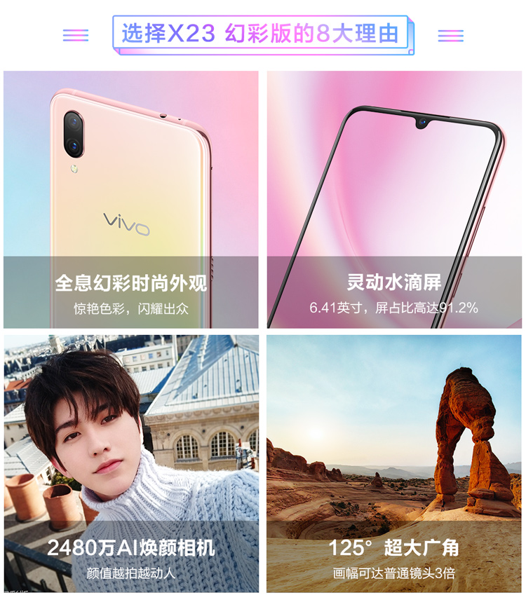 vivo X23全息幻彩版 6GB+128GB 星语新愿 水滴屏全面屏 游戏手机 移动联通电信全网通4G手机