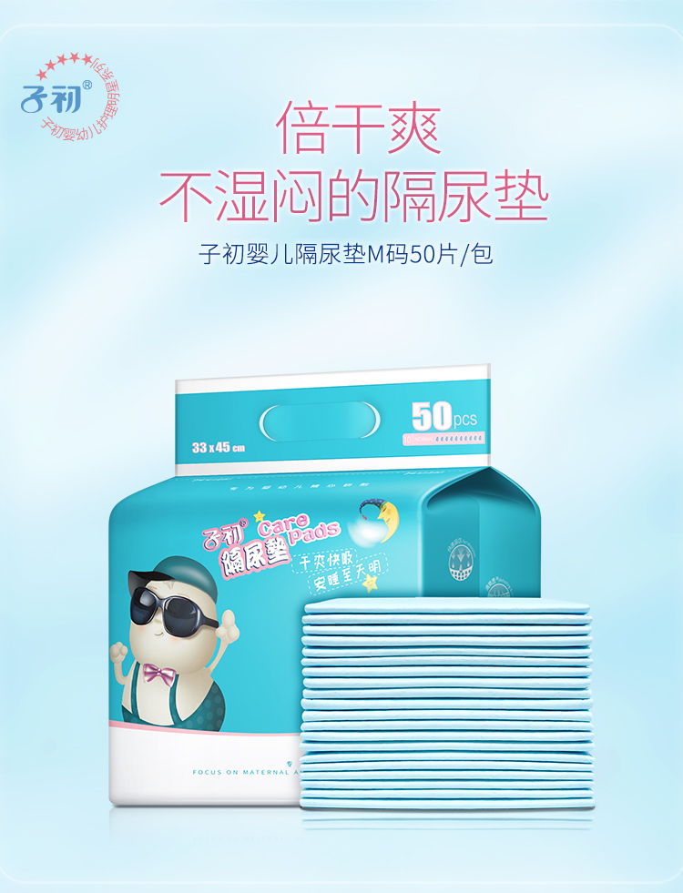 子初婴儿隔尿垫 防水透气新生儿床单儿童一次性床垫50片 33*45cm